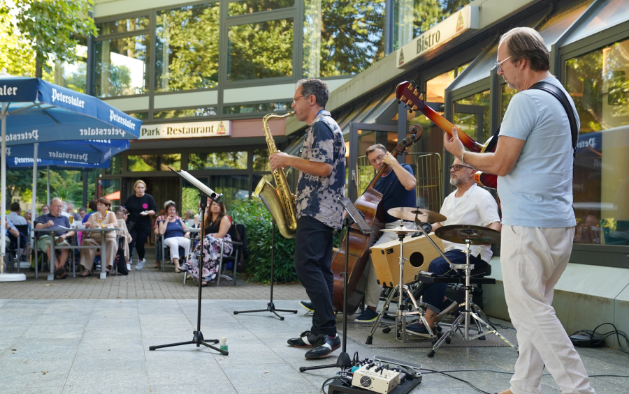 Freuen Sie sich auf 3 Abende voller Jazzgenuss: Unsere beliebte Konzertreihe JazzHoch3 bringt auch in diesem Jahr wieder großartige Live-Musik ins Kurhaus. Erleben Sie abwechslungsreichen Jazz in gemütlicher Atmosphäre – im Bistro des Kurhauses oder bei schönem Wetter auf der Terrasse.